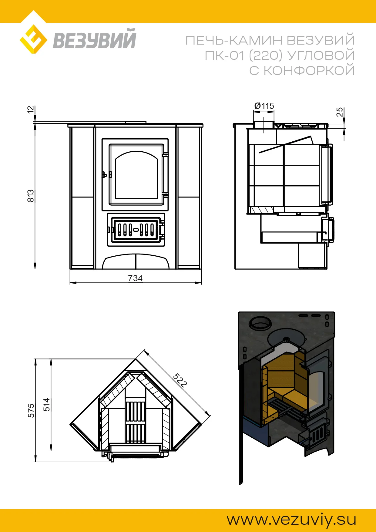 Преимущества углового Печи–камина ВЕЗУВИЙ ПК-01 (220) с конфоркой: