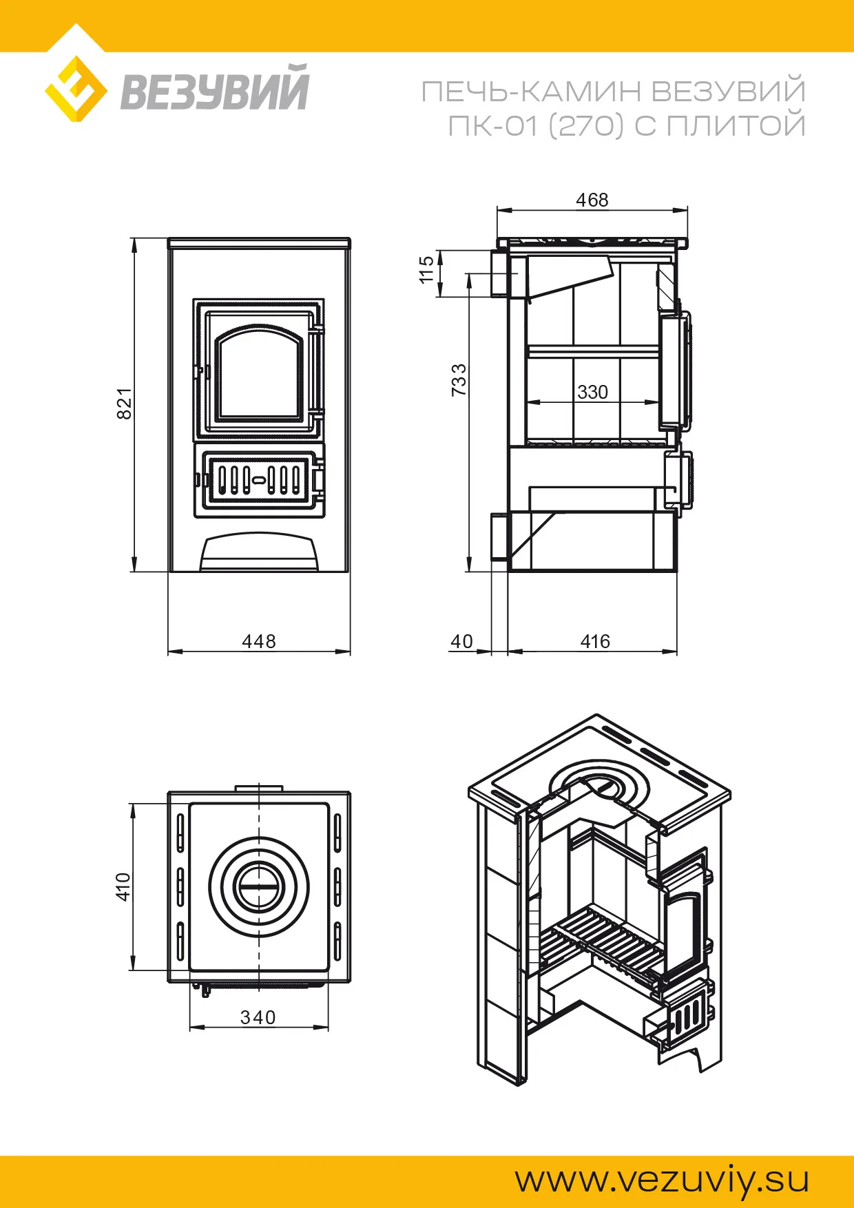 Преимущество Печи-камина ВВЕЗУВИЙ ПК-01 (270) с плитой 9 кВт (270):