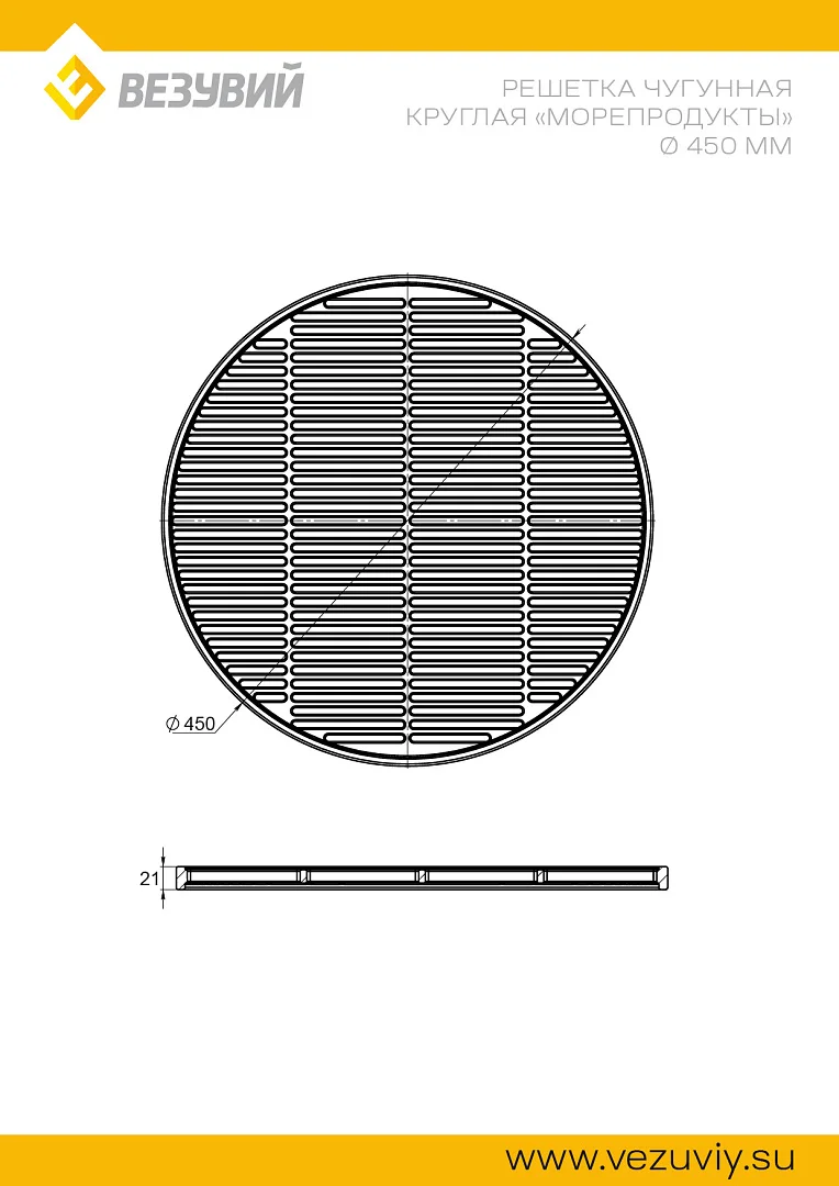 Чугунная решетка "Морепродукты" Ø 450мм предназначена для приготовления продуктов на открытом огне.