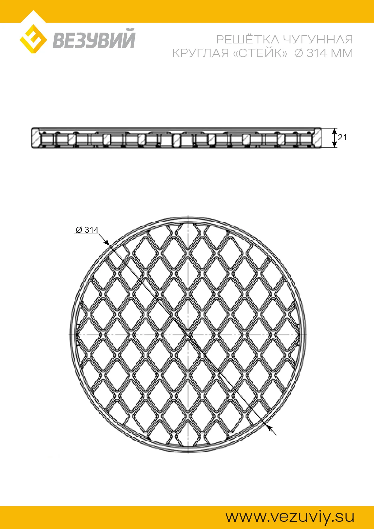 Решетка чугунная Везувий Ø 314 мм сконструирована для Очага Везувий Фантастик из чугуна и предназначена для приготовления продуктов на открытом огне.Решетка из чугуна прочна, долговечна, обладает хорошей теплопроводностью и высокой теплоёмкостью. Энергия огня быстро распределяется по металлу, что позволяет быстрее получить готовые продукты с красивым рисунком.Пищевой чугун не выделяет вредных веществ, при регулярной готовке и обработке растительным маслом приобретает антипригарные свойстваРешётка Везувий Ø 314 мм толщиной 21 мм комбинируется с плитами-секторами для Очага Везувий Fantastic, обеспечивая на очаге дополнительное место для готовки мяса, рыбы, крупных овощей.