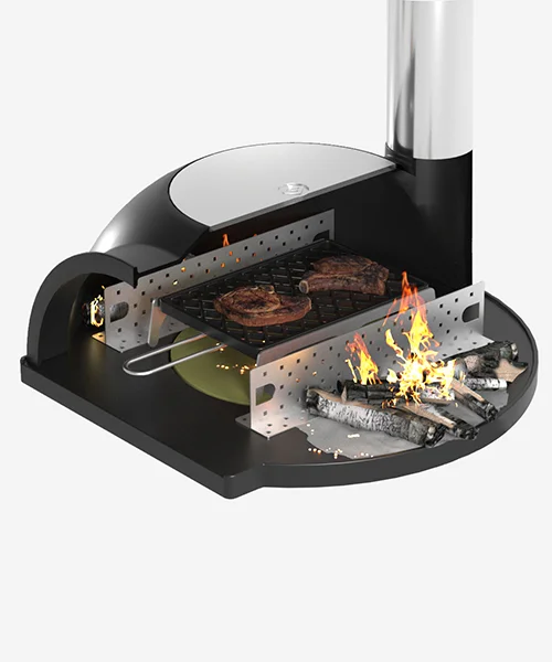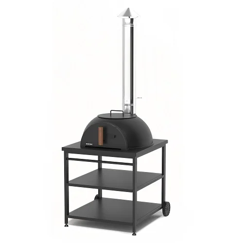 Мощная подставка под основание обеспечивает устойчивость и правильное положение печи Легенда Гарден. Подставка оснащена двумя полками для хранения запаса дров или размещения аксессуаров для готовки и ухода за печью. Полки из миллиметровой стали окрашены термостойкой краской и выдерживают значительные весовые нагрузки. Нижняя полка размещена на высоте 12 см от поверхности, верхняя полка – на высоте 47 сантиметров.