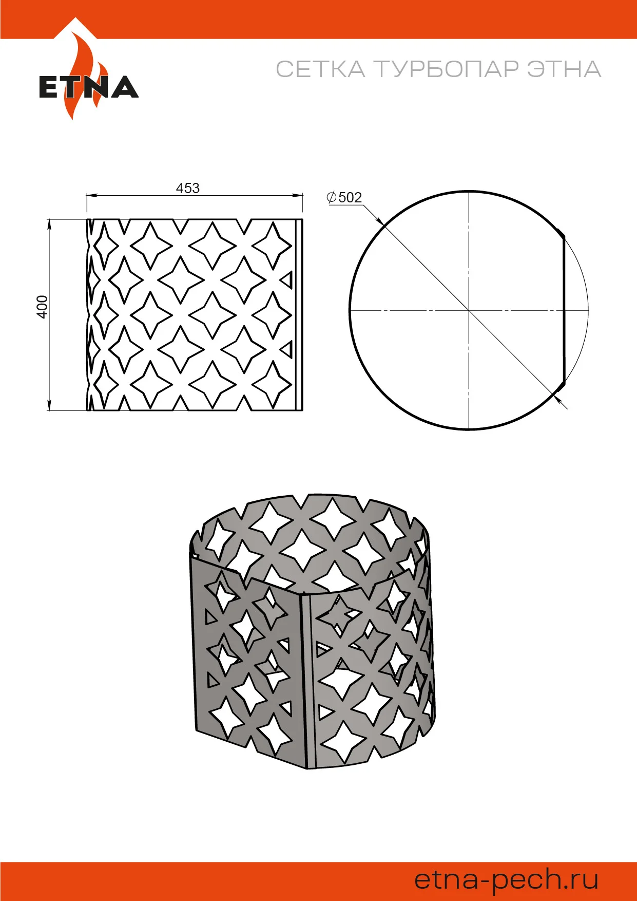 Сетка Турбопар Этна отличный вариант дизайнерского и функционального решения, если вы не хотите устанавливать на свою печь стандартную сетку под камни, а хотите украсить свою печь.