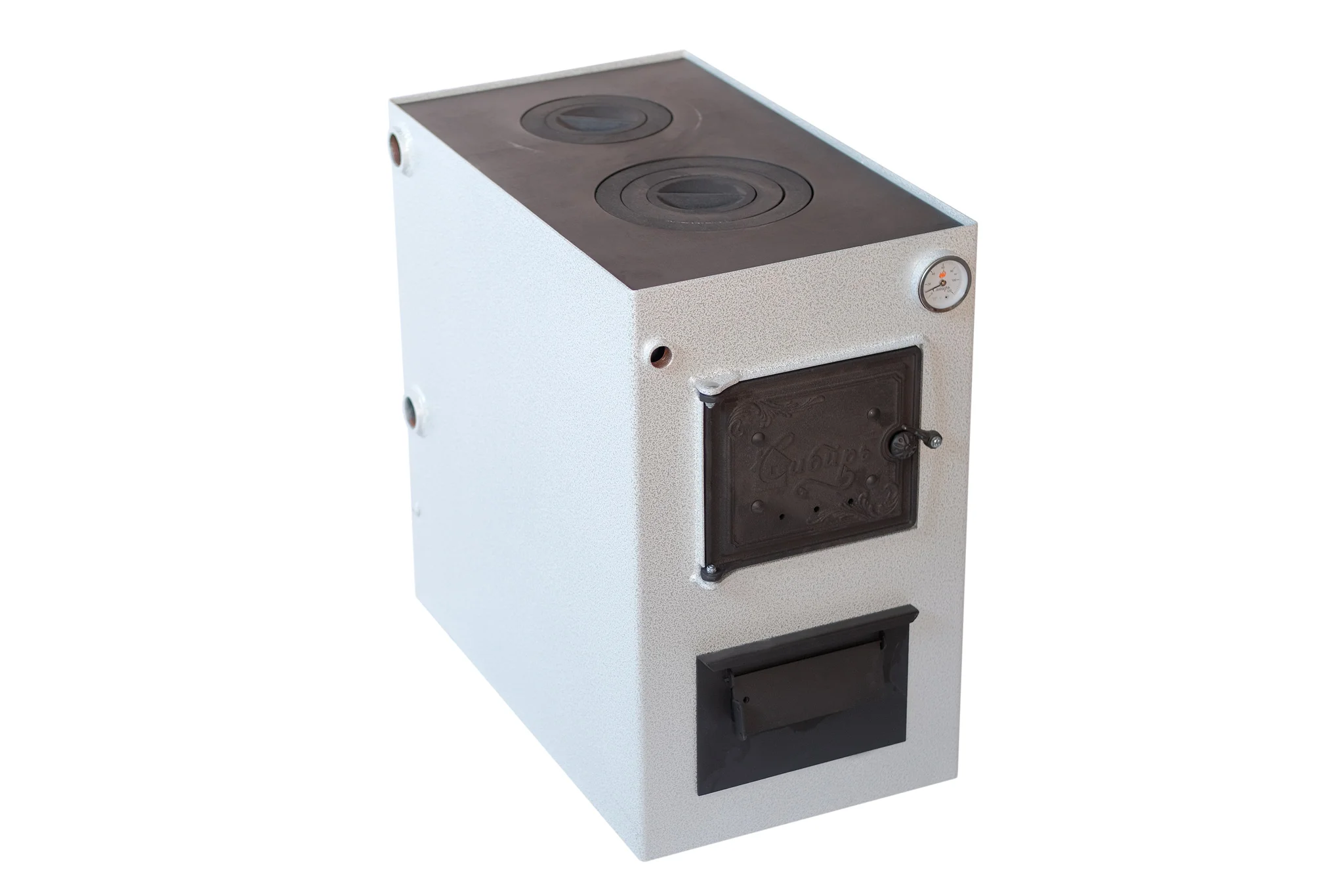 Котел водяного отопления "Сибирь КВО" 20 кВт - это самый мощный котел в отопительной линейке КВО. Данный котел имеет компактные габариты, универсальное расположение элементов подключения, глубокую и емкую топочную камеру, позволяющую использовать длинные дрова при розжиге. Котел "Сибирь КВО" 20 кВт также как и другие котлы серии КВО оснащен варочной плитой, изготовленной из стали, толщиной 12 мм (запатентованной технологией завода "НМК"). На данный котел существует возможность установки автоматического регулятора тяги подачи воздуха. Отличительной особенностью данного котла является топочная дверца, изготовленная из чугуна с фирменным брендированным рисунком "Сибирь". С внутренней стороны дверцы установлен отбойник пламени из стали, защищающий основную дверцу от избыточной термической нагрузки и деформации. В процессе эксплуатации дверца плотно закрывается и открывается, не провисает и не ржавеет. Это дает дополнительную эстетику, необходимую в современном загородном доме. Котел водяного отопления "Сибирь КВО" 20 функционирует на твердом топливе: дрова, прессованные брикеты, уголь и способен справиться с отоплением дома площадью до 200 м2, оборудованного системой водяного отопления с естественной или принудительной циркуляцией. Рабочее давление, предусмотренное для оптимального функционирования котла "Сибирь КВО" 20 кВт составляет не более 1 Бар.