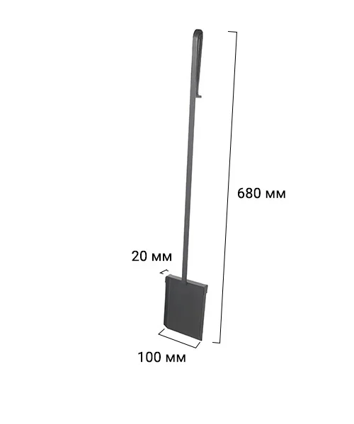Совок необходим для печей и каминов. Оснащен длинной удобной рукояткой и крючком для подвешивания. Совок имеет прочные края для предотвращения его деформацию при сборе золы.