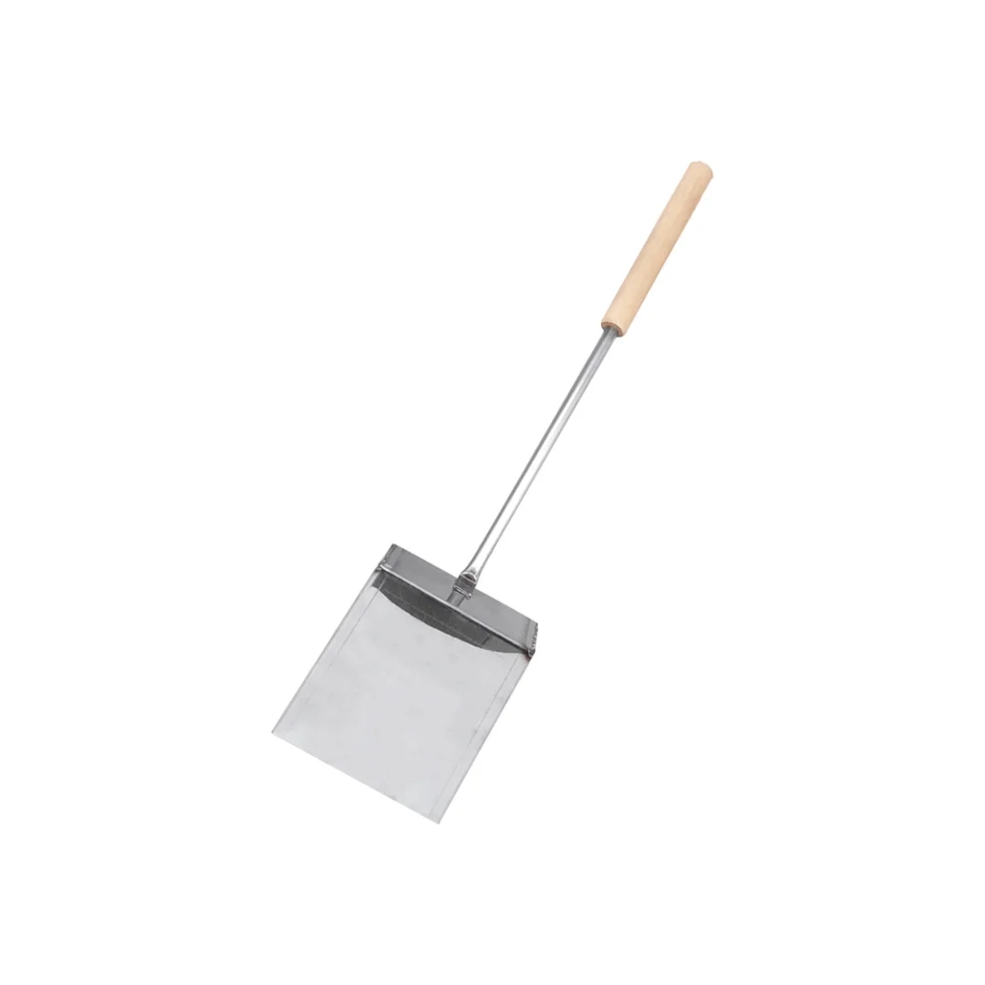 Совок из нержавеющей стали длиной 50 см. Выдерживает высокие температуры. Легко чистится после использования.