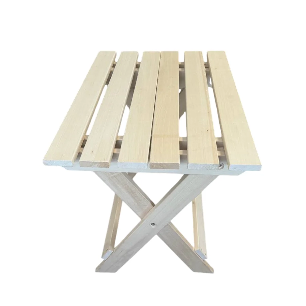 Стол для предбанника в баню. Позволяет расположиться нескольким людям и комфортно отдохнуть после парения. Складная конструкция позволяет убирать стол для хранения или перевозить в новые места.
