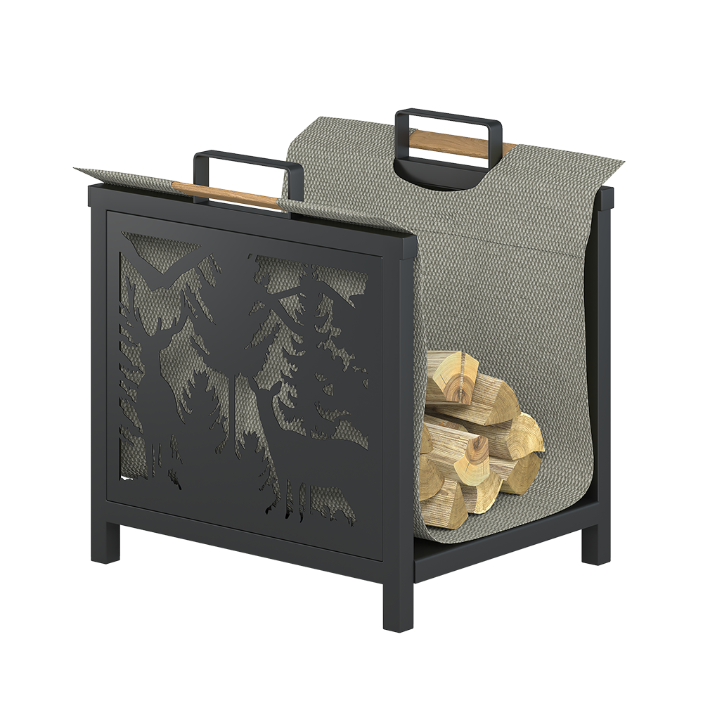 Сумка для дров сделана из прочного стойкого к повреждениям брезента. Сумка используется для переноски дров, а также для их временного хранения в зоне перед печью или камином.