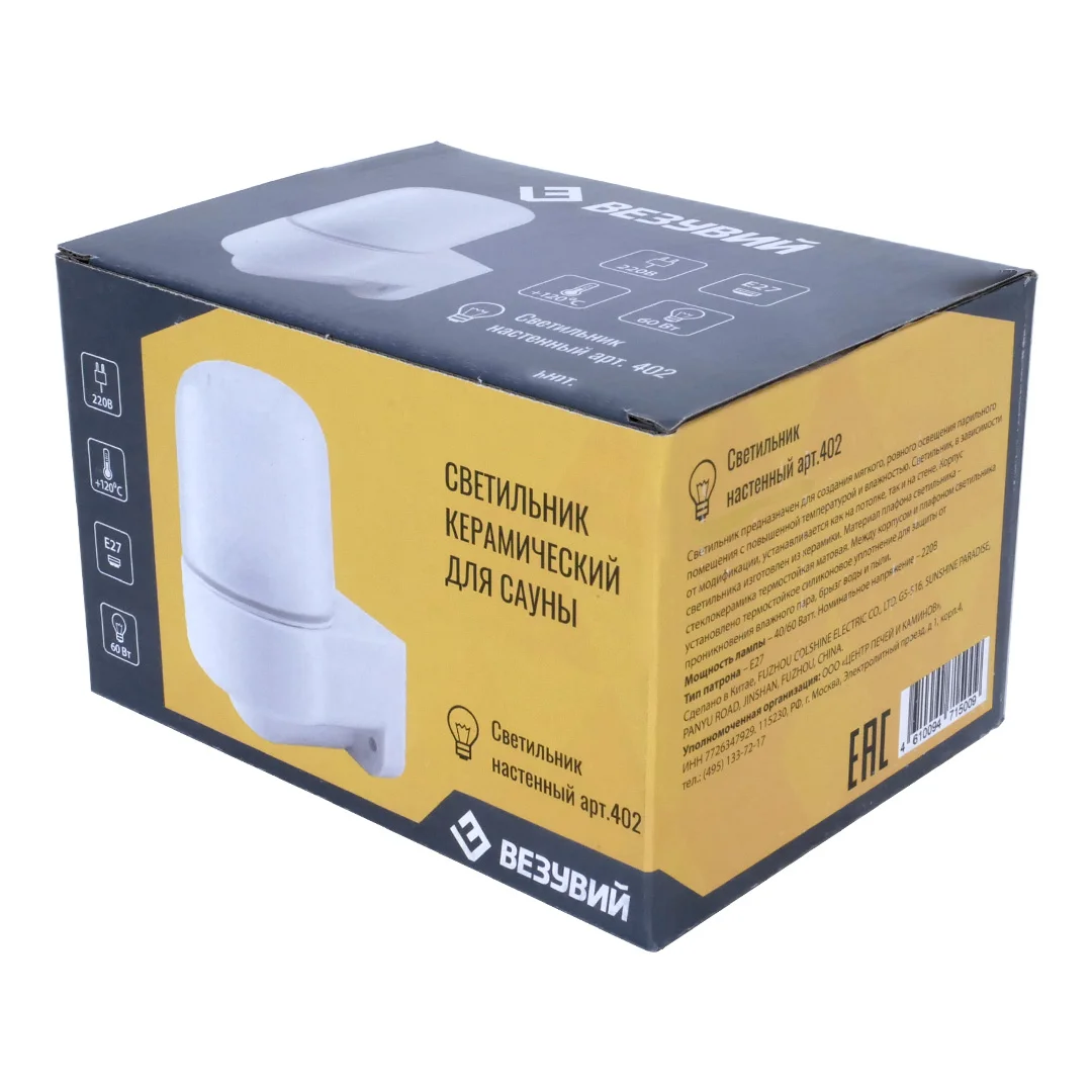 Светильник "ВЕЗУВИЙ" для сауны (арт.402) Настенный (термопластик) предназначен для установки внутри парильного помещения бани, устойчив к воздействию влажности и высоких температур