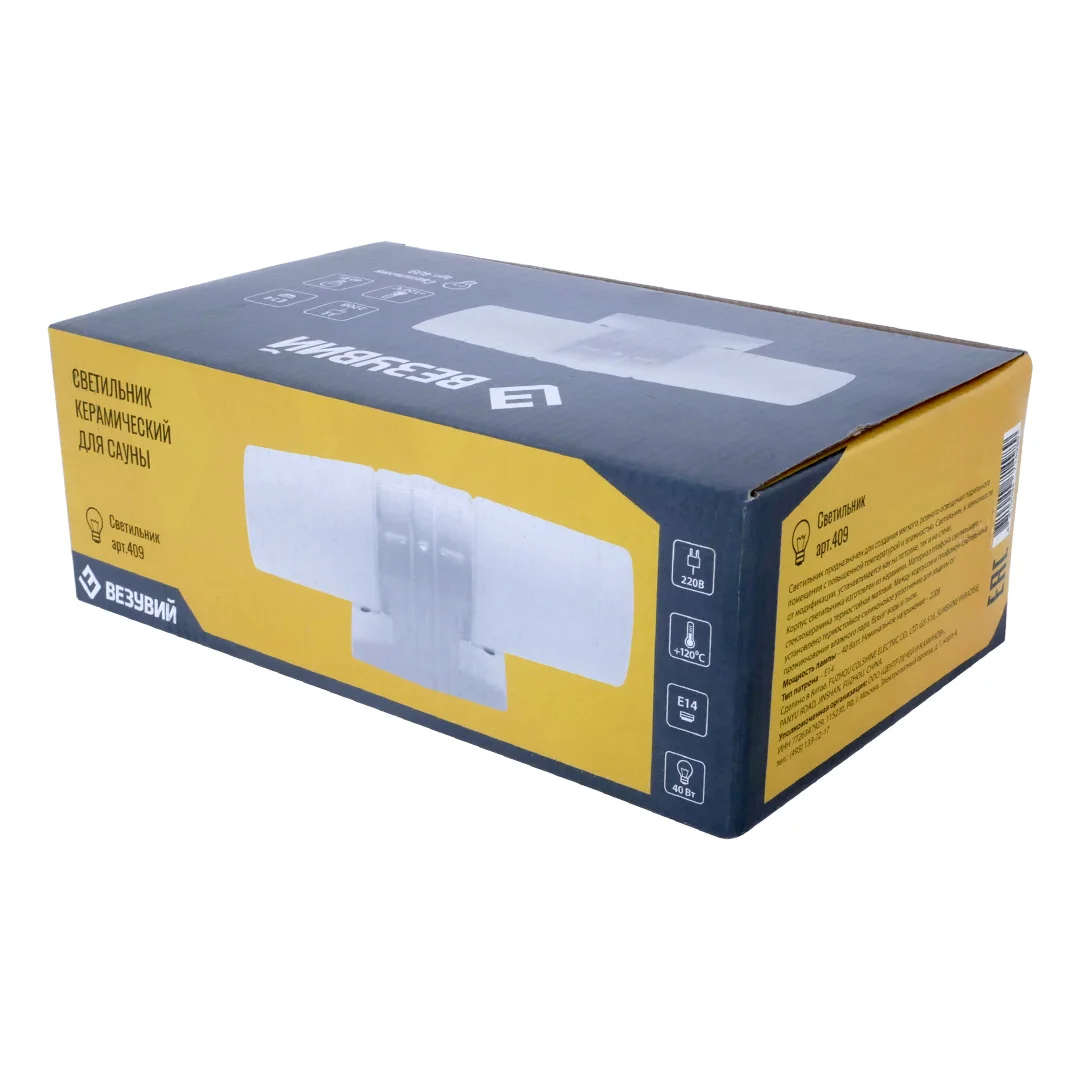 Светильник предназначен для создания мягкого, ровного освещения помещений с повышенной температурой и влажностью для парильного помещения бань и саун. Корпус изготовлен из керамики, материал плафона - силикатное термостойкое стекло матового цвета. Между корпусом и плафоном светильника установлено термостойкое силиконовое уплотнение для защиты от проникновения влажного пара, брызг воды и пыли.