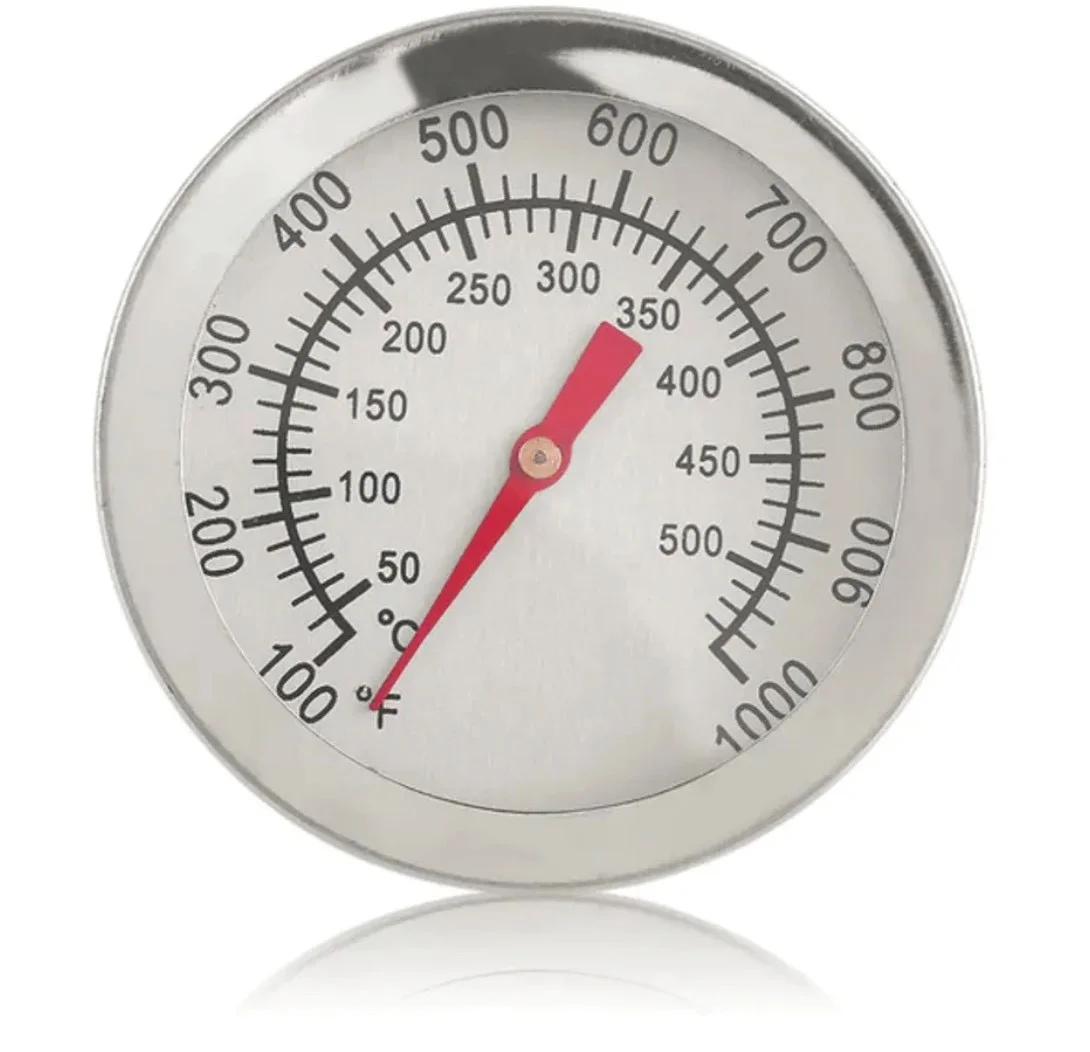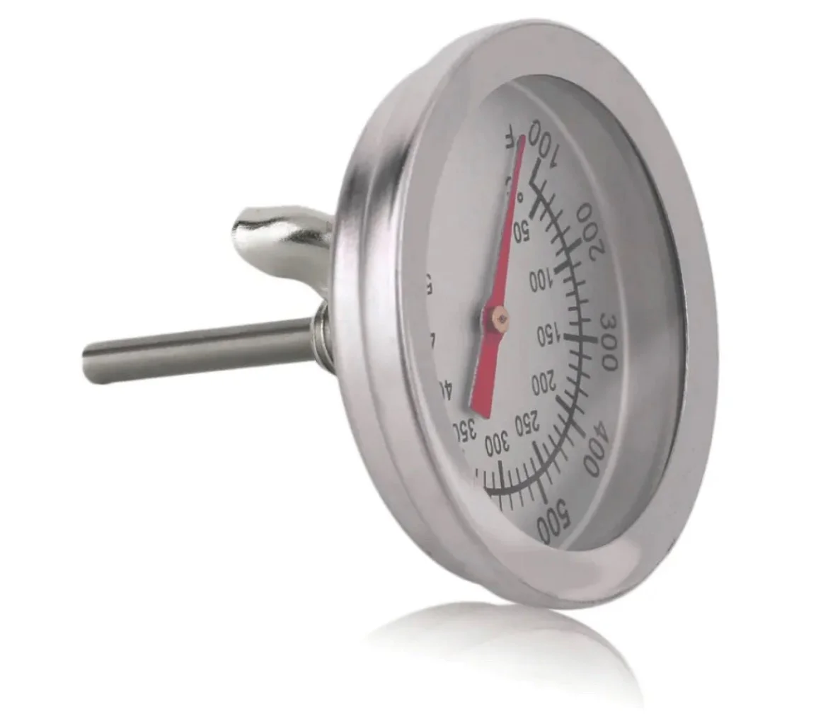 Технические характеристики- диаметр шкалы: 52 мм- тип крепления: винтовой барашек- общая высота: 53 мм- длина термозонда: 42 мм- толщина: 11 мм- диаметр под резьбу: 8 мм- двойной индикатор температуры: от 50 до 500 по Цельсию, от 100 до 1000 градусов по Фаренгейту- шаг деления по Цельсию: 10 градусов- шаг деления по Фаренгейту: 20 градусов- цвет: серебро- материал: нержавеющая сталь и взрывозащищенное стекло- вес: 35 гр