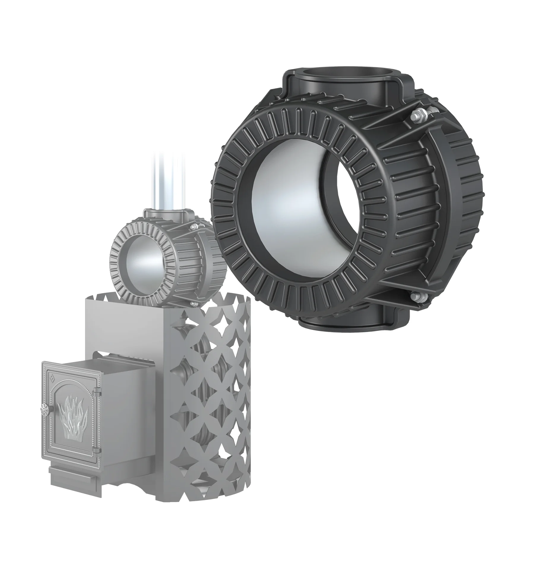 - Устанавливается на любую печь с Ø115 и Ø120 мм (банную и отопительную).
