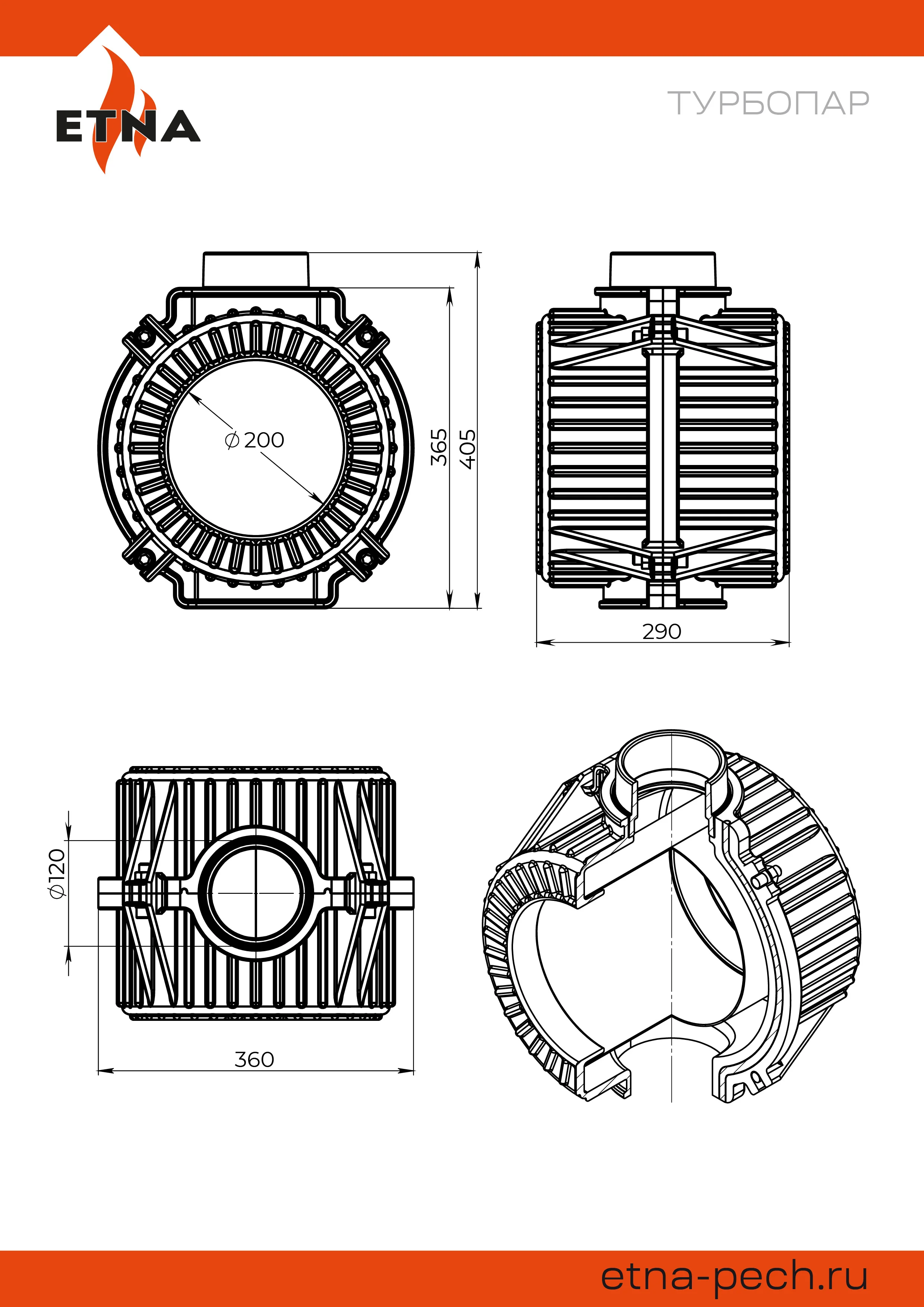 - Простота монтажа позволяет установить турбопар на новую печь, а также на печь, которая уже установлена и функционирует.