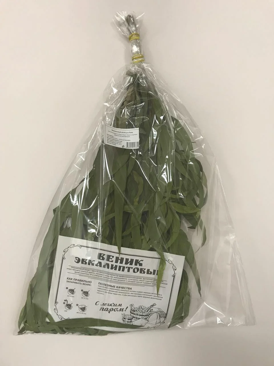 В последнее время этот веник достаточно широко используется в парной. Объясняется это тем, что лист эвкалипта обладает ценнейшими целебными свойствами: он снимает боль, хорошо помогает при радикулите, невралгии, растяжениях, ушибах, мышечных воспалениях (миозитах), болезненных ощущениях в суставах, при тугоподвижности суставов. Ингаляции с эвкалиптом - распространенное средство в современной фитотерапии. В парной можно делать не только массаж, но и ингаляцию с эвкалиптовым веником. Для этого нужно смочить веник в настое эвкалипта, прижать к лицу и дышать через нос. Такая процедура помогает при болезнях бронхов, гортани, воспалительных процессах в трахеях, застарелом кашле, насморке. Если под рукой не оказалось эвкалиптового веника, смочите в эвкалиптовом настое любой другой.