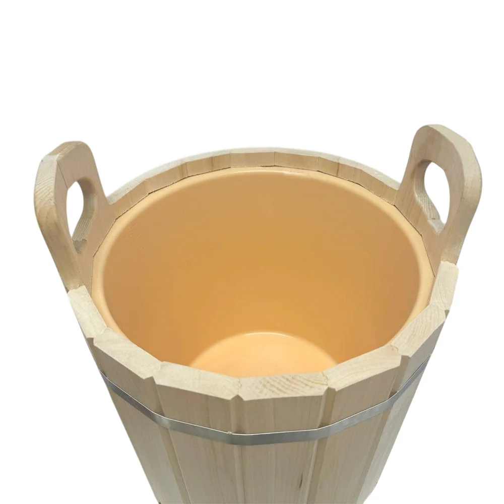 Отлично подходит для хранения и переноски воды, настоя трав, запарки веников. Вставка из пластика обеспечит удобный уход. Ведро оснащено удобной ручкой из толстой бечевы