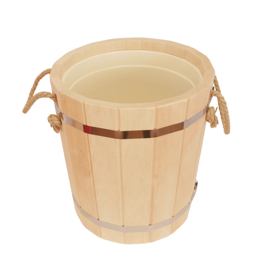 Отлично подходит для хранения и переноски воды, настоя трав, запарки веников. Вставка из пластика обеспечит удобный уход. Ведро оснащено удобной ручкой из толстой бечевы.