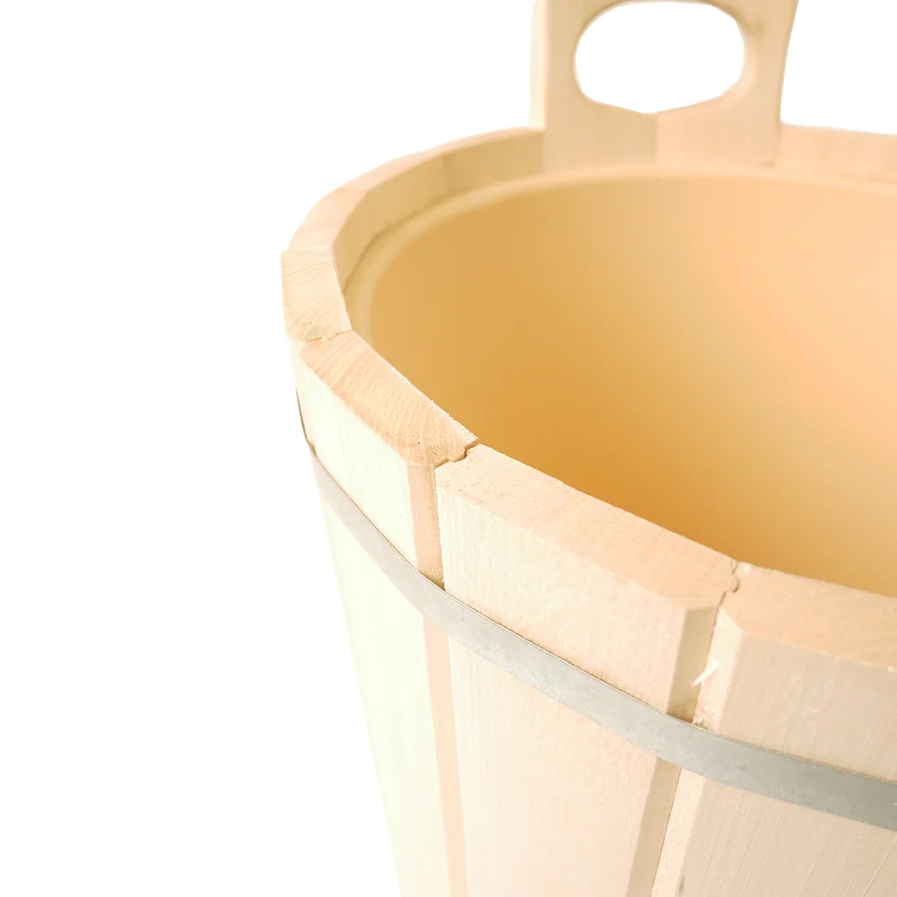 Отлично подходит для хранения и переноски воды, настоя трав, запарки веников. Вставка из пластика обеспечит удобный уход. Ведро оснащено удобной ручкой из толстой бечевы.