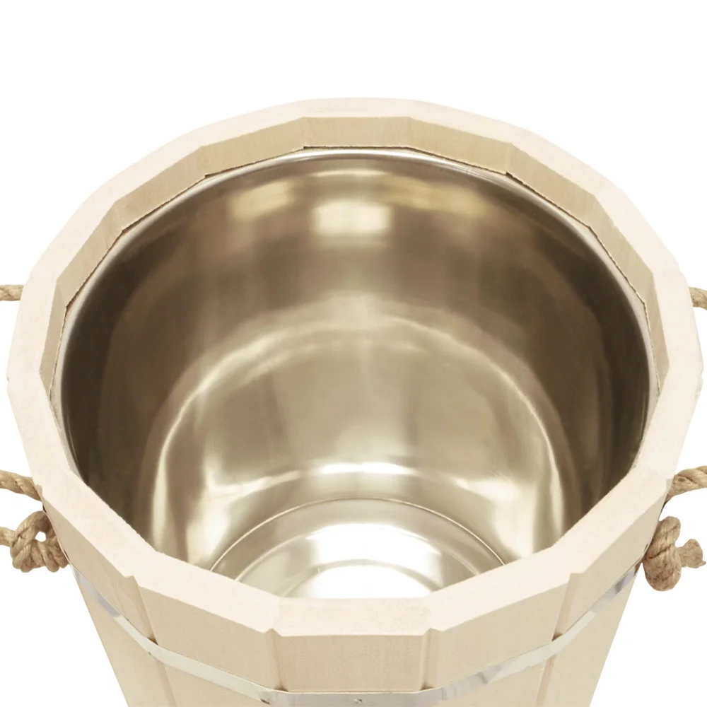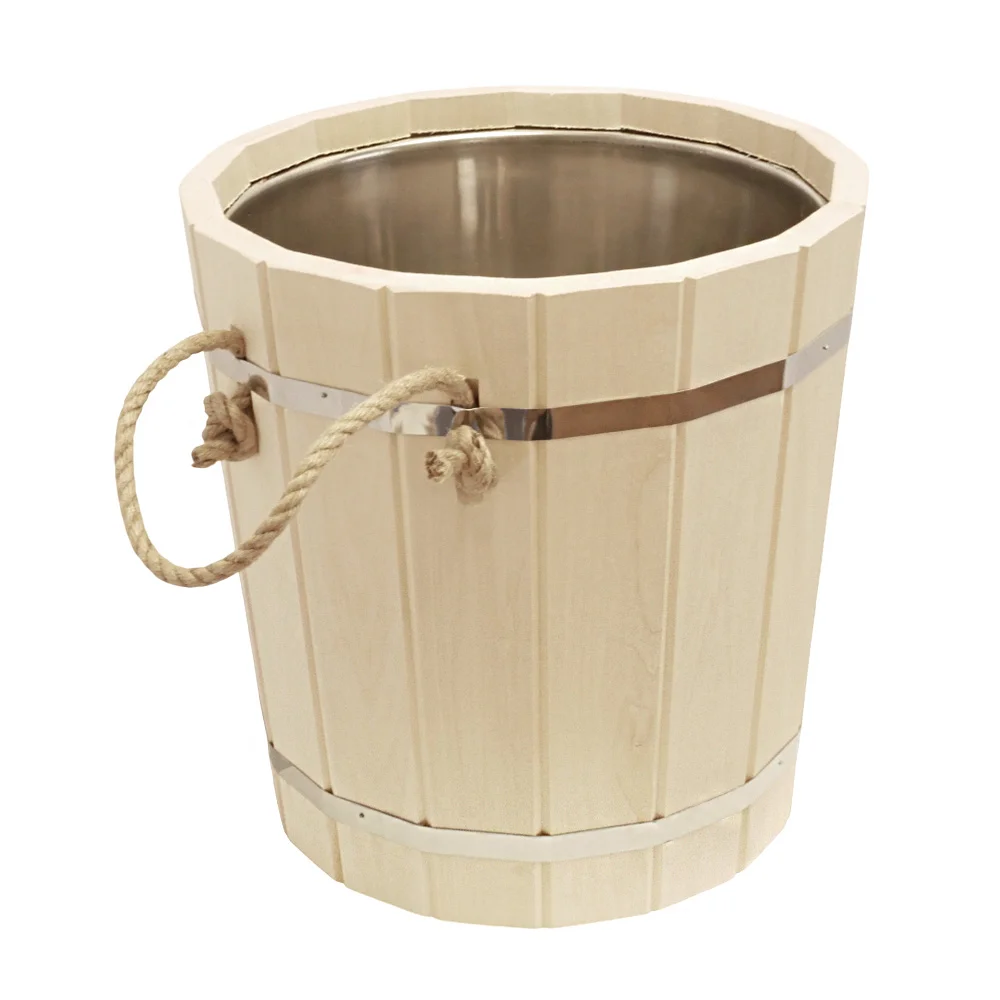 Отлично подходит для хранения и переноски воды, настоя трав, запарки веников. Вставка из нержавеющей стали увеличит срок службы изделия и обеспечит удобный уход. Ведро оснащено удобной ручкой из толстой бечевы