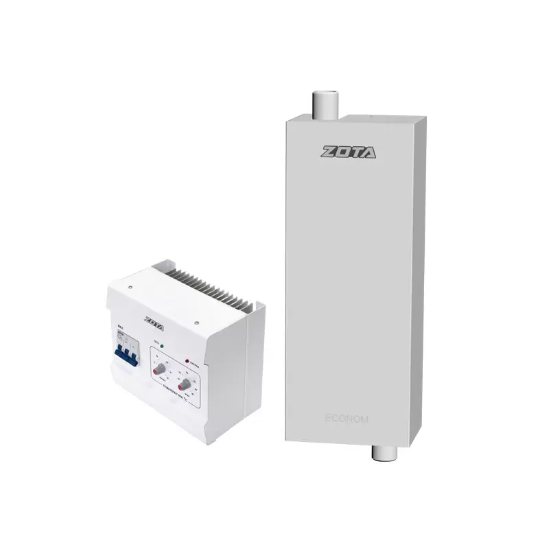 Электрокотел ZOTA "Econom" предназначен для отопления жилых и промышленных объектов площадью до 120 м². Пульты управления с автоматическим регулированием температуры воздуха в помещении от +10 до +35°С и теплоносителя на выходе из котла от +40 до +90°С обеспечивают оптимальную работу системы в заданных режимах.