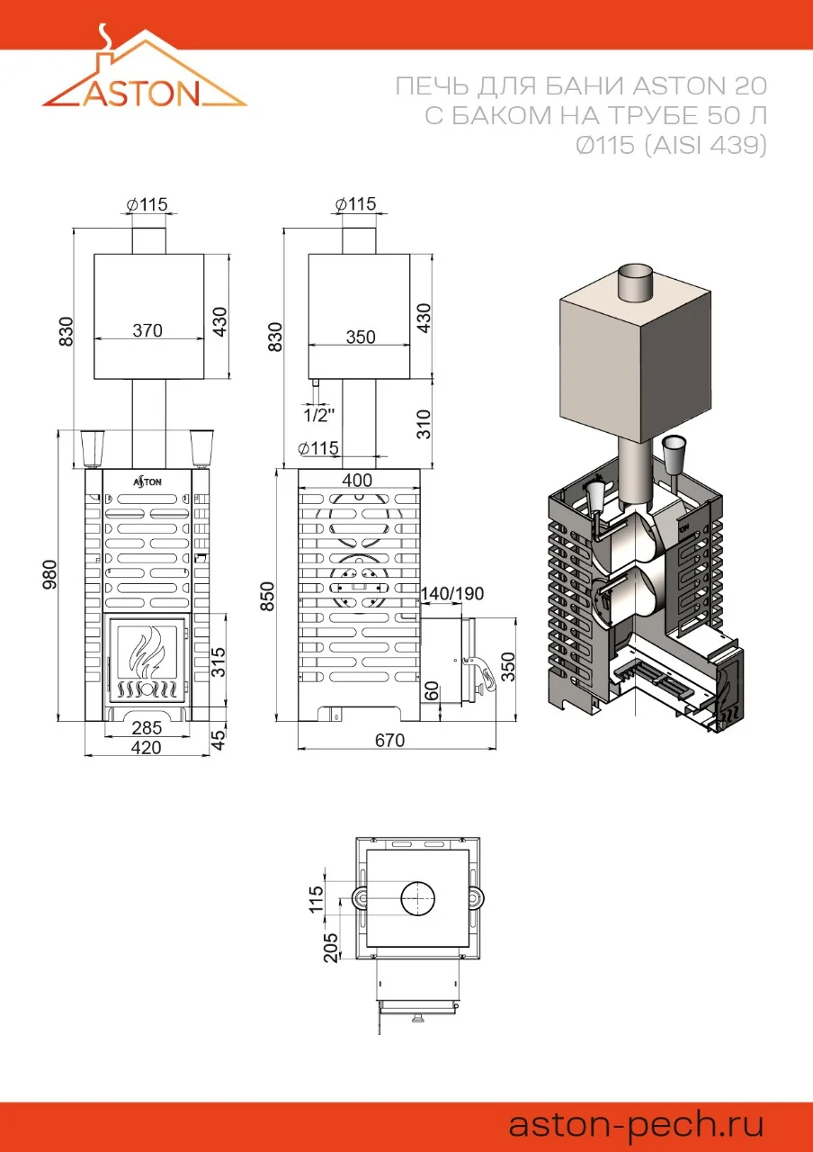ASTON — бренд банных печей для бюджетных парных и бань-бочек. Несмотря на доступную цену, их конструкция очень интересна: