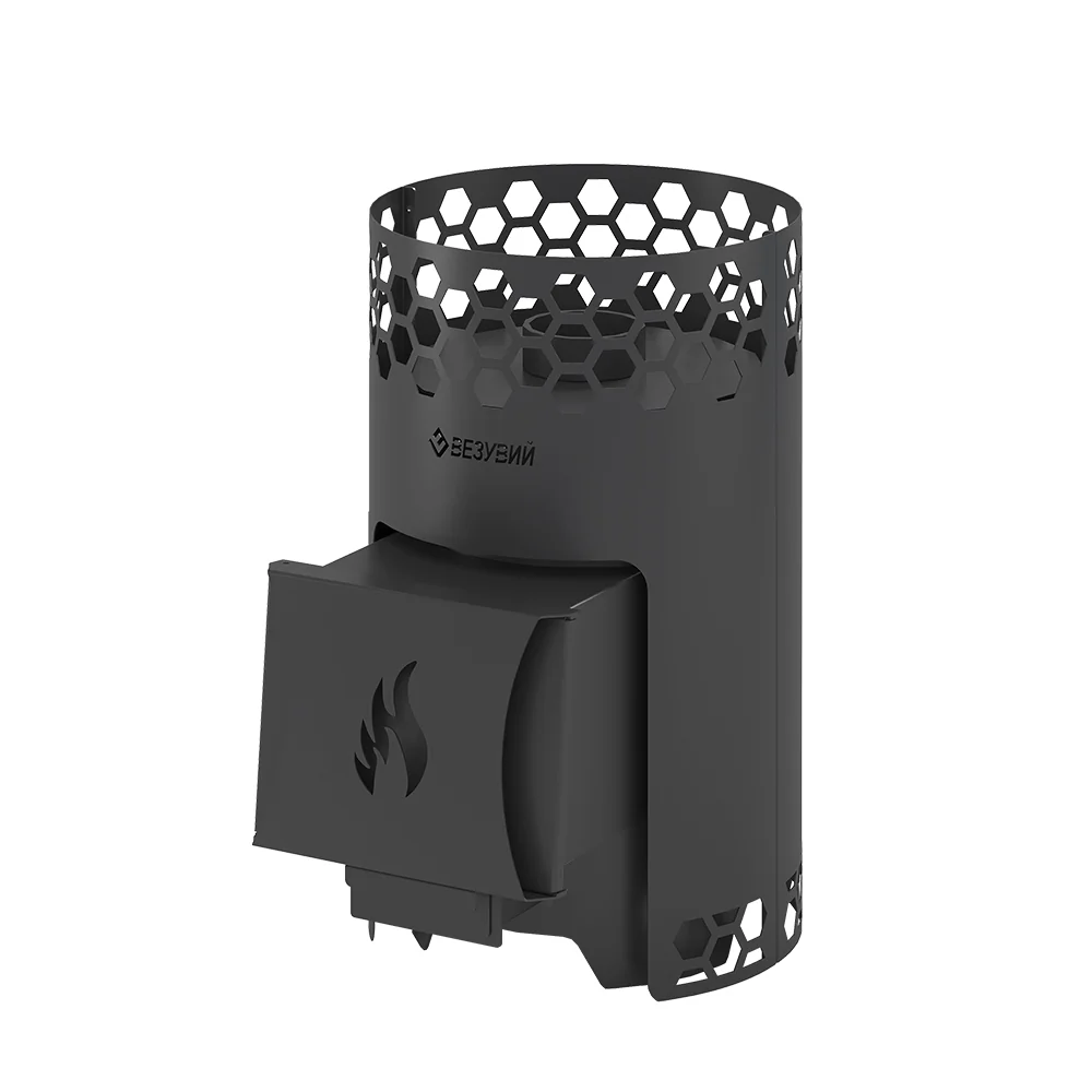 Печь для бани Везувий "Чёрная Пчёлка" — дровяная печь для бани из котловой стали 09Г2С. Корпус с сотами, дверь с угловой загрузкой и двусторонним открытием. Диаметр дымохода 115 мм. Возможна комплектация стеклом, баком 50 л, подиумом и экраном. Каменка открытого типа.